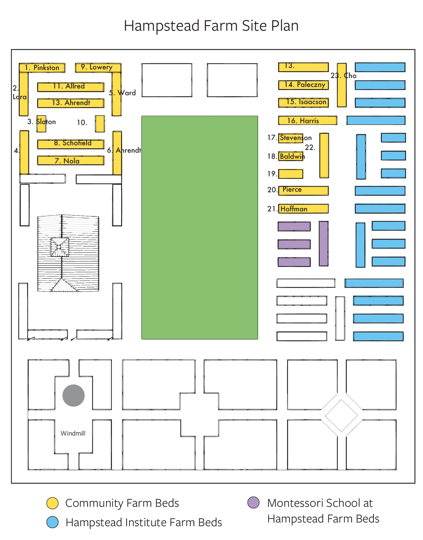 The site plan below shows available bed locations. You must indicate on the sign up form which bed you are requesting and this will be assigned to you (if available) once we receive your check.
